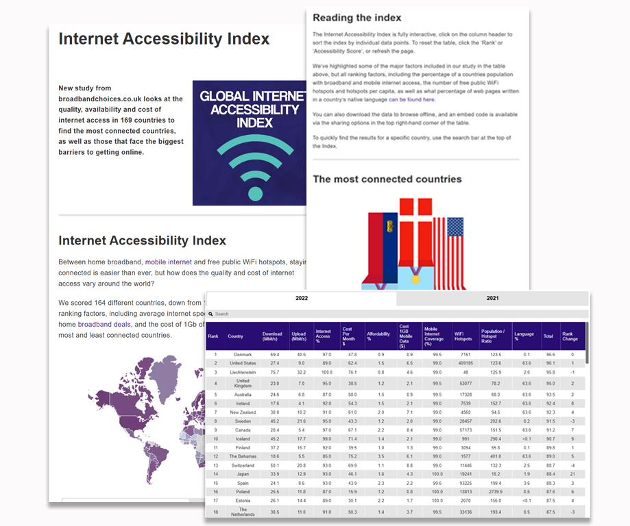 The "Internet Accessibility Index" earned links from reputable publications in the technology and lifestyle sectors, but due to the depth of data, we were also able to secure links from charities and non-profits such as the Internet Society and Freedom House.